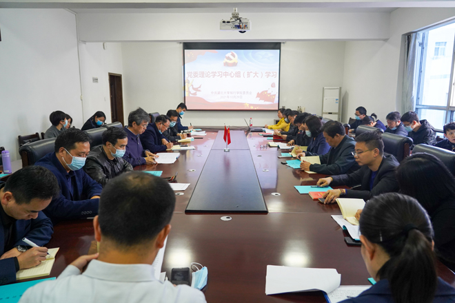10月29日下午,学校党委理论学习中心组召开集体学习(扩大)会议。校党委书记彭德忠主持学习。校党委委员,各党总支书记、副书记,直属党支部书记及相关职能部门负责人参加学习。